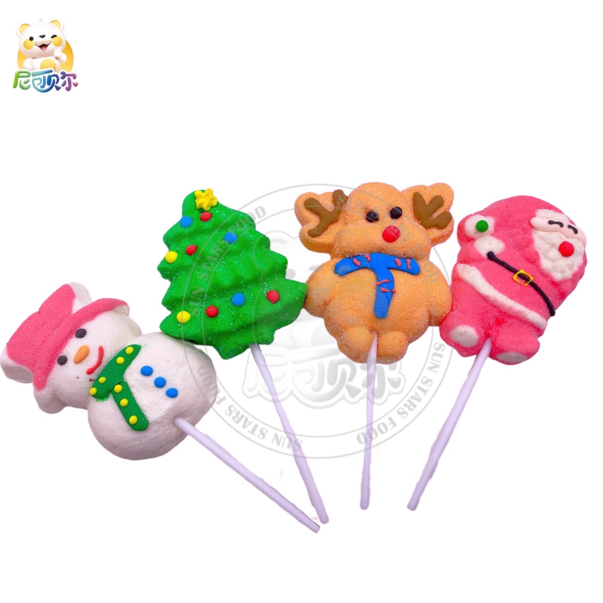 Christmas Cartoon Shape Cotton Candy Lollipop Fudge Children's Casual Snacks-W011
