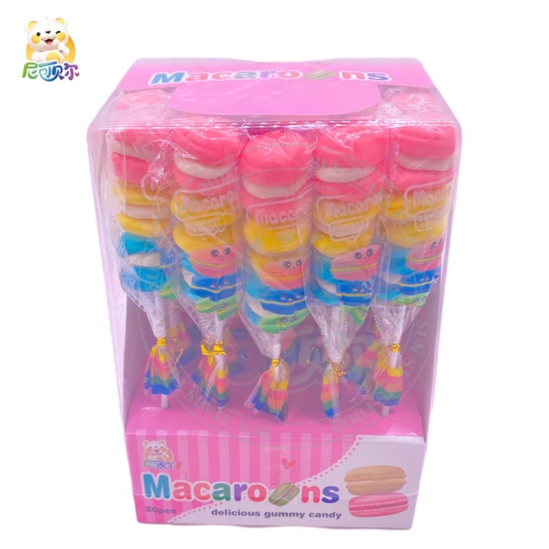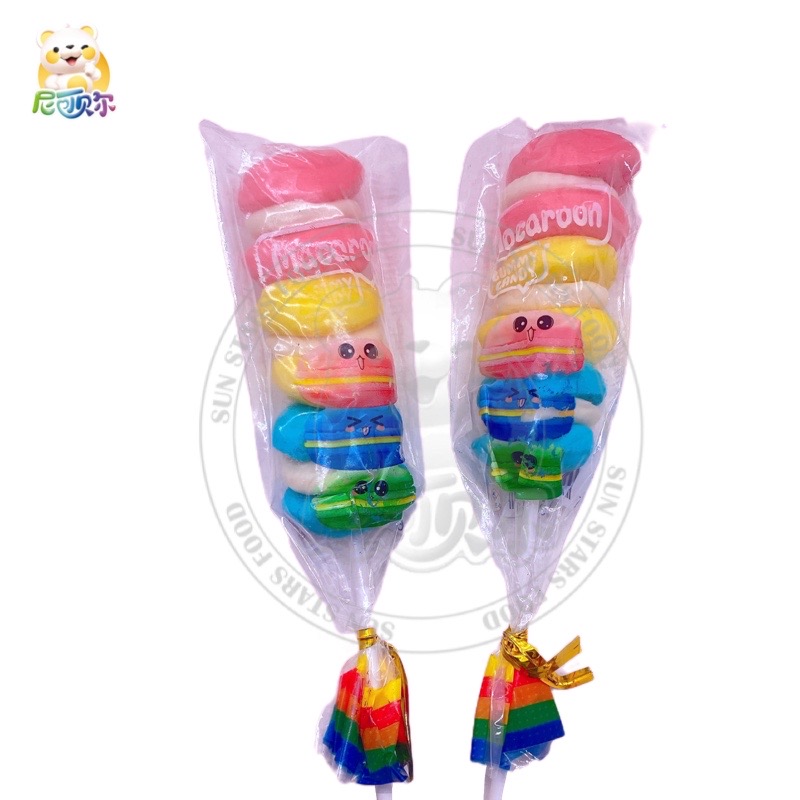 New Multi Color Yummy Fruit Flavor Macaron Hamburger Lollipop Soft Jelly Gummy Candy-G325
