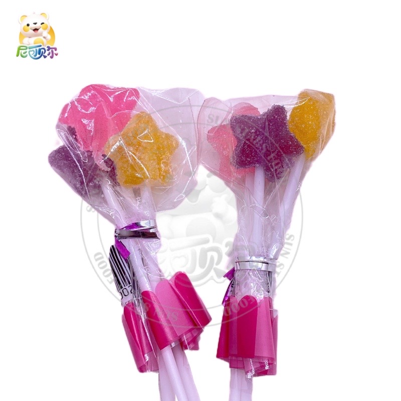 Multi Colors Pentagram star Shape Gummy Candy Lollipop Fruity Chew Soft Candy Jelly Gummy Lollipop-G329