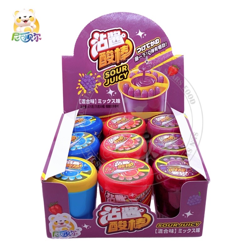 High Quality Juicy Dip Chewy Gel Soft Gummy Candy Stick With Sour Juice Dipping Sauce-G341