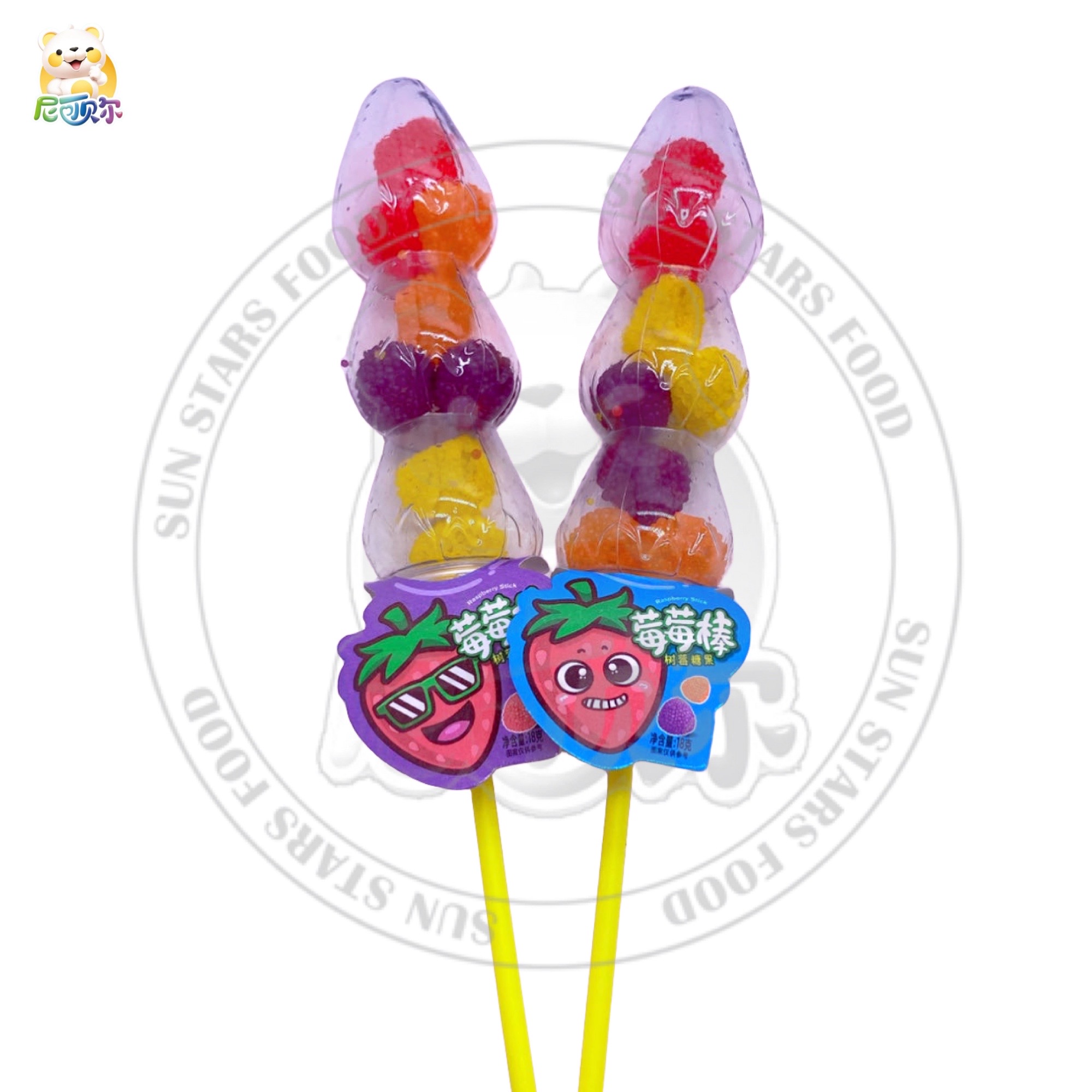 Good Taste Sweet Raspberry Fudge Colourful Stone Gummy Candy In A Bottle Shaped Like A Tree-G347