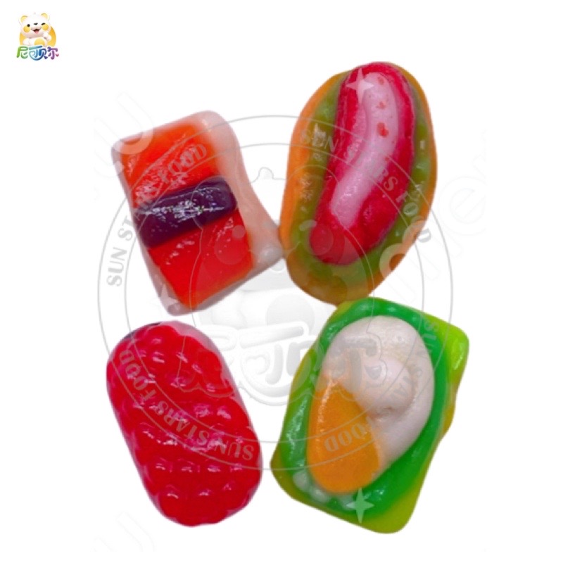 Halal Candies Wholesale Fudge Candy Letter Of The Sandwich Hot Dog Poached Egg Sushi Shape Gummy Jelly Soft Candy-G360