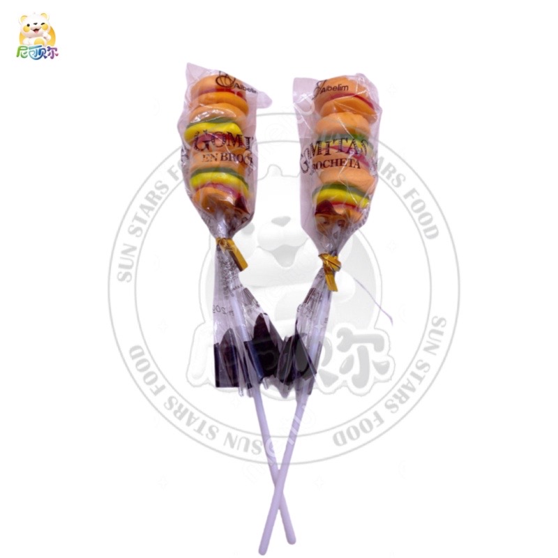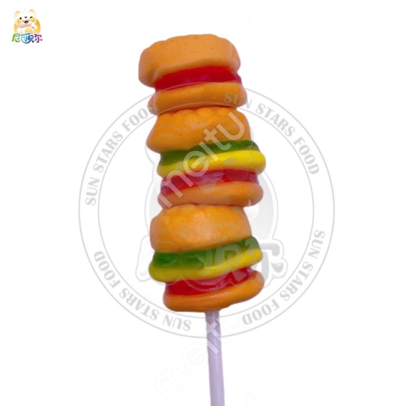 Halal Fruity Long Burger Lollipop Stick-Shaped Hamburger Gummy Candy Packaged in a Bag Tree Design-G364