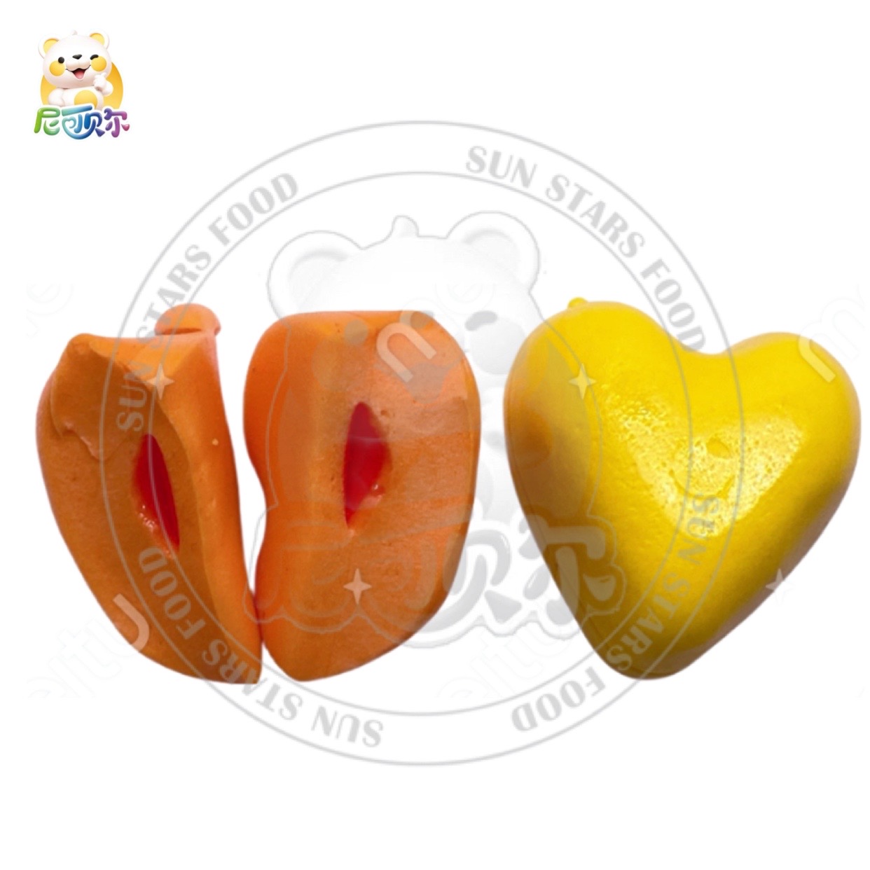Halal Gummy Heart Shape Gummi Jam Burst Exploding Candy in Fruity and Mix Fruits Flavors Packaged in a Box-G368