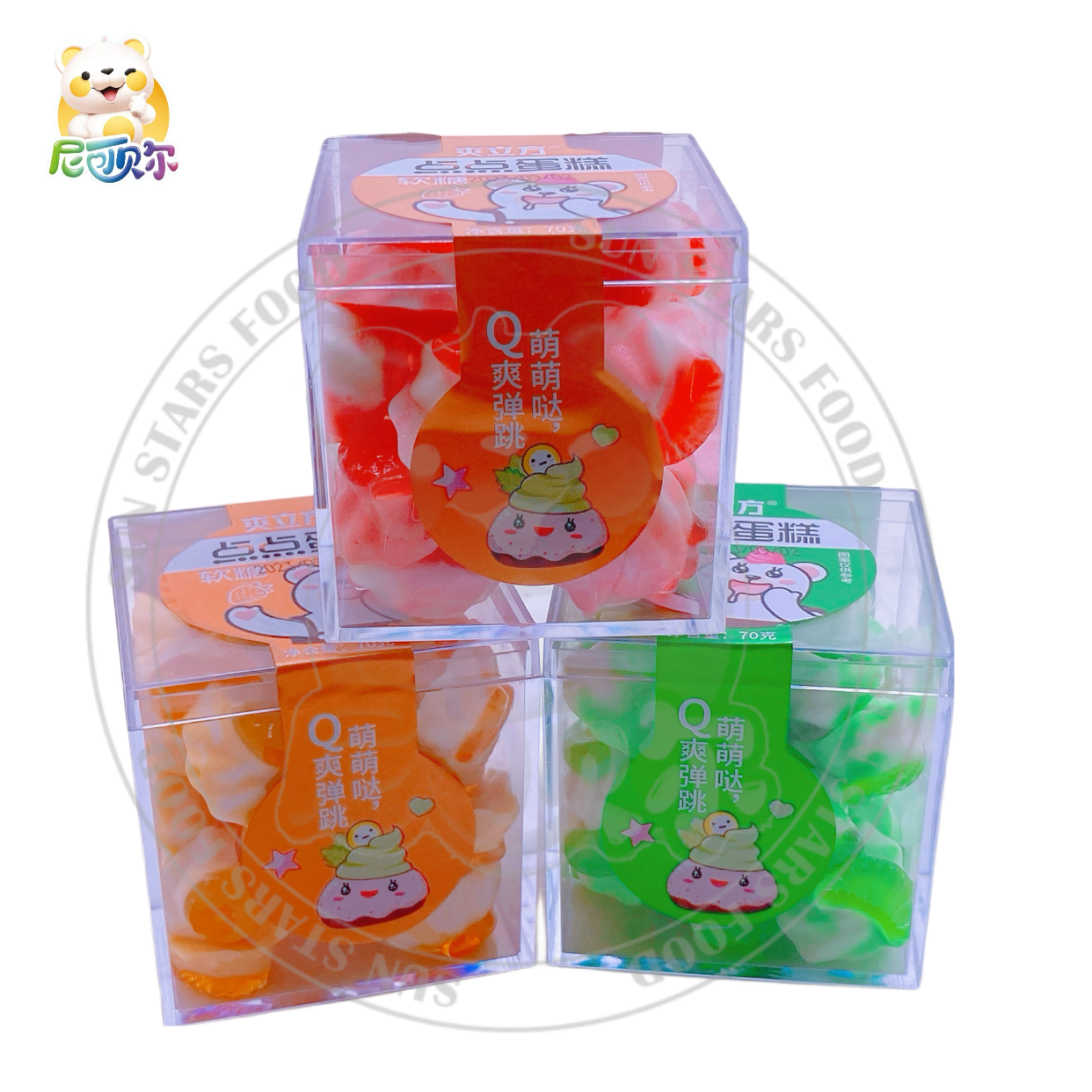 Hot Selling Mixed Fruity Gummy Candy Yummy Dessert Caramelo Blando Cake Shape Soft Candy in Bag Packaging-G395
