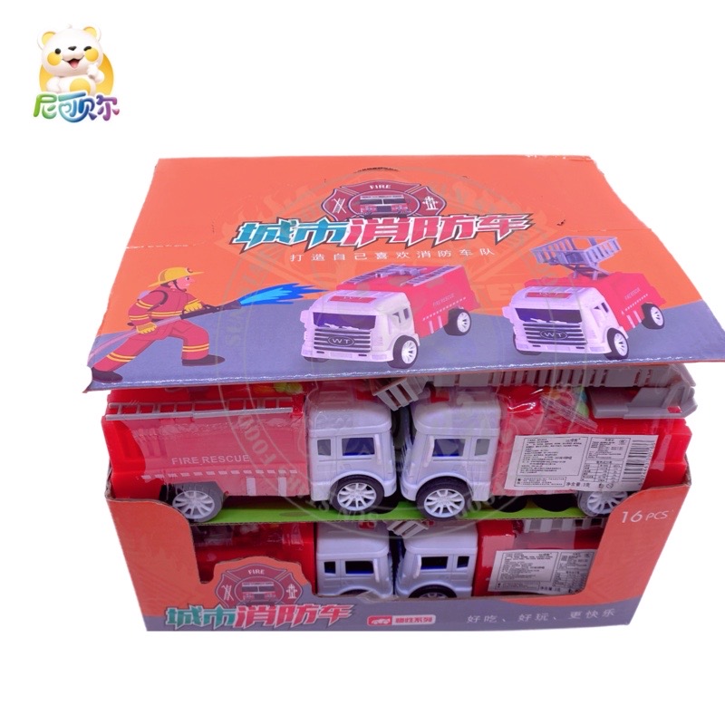 Factory Direct New Item Small Car Plastic Fire Engine Toy Candy Inside Display Box Package High Quality--T532