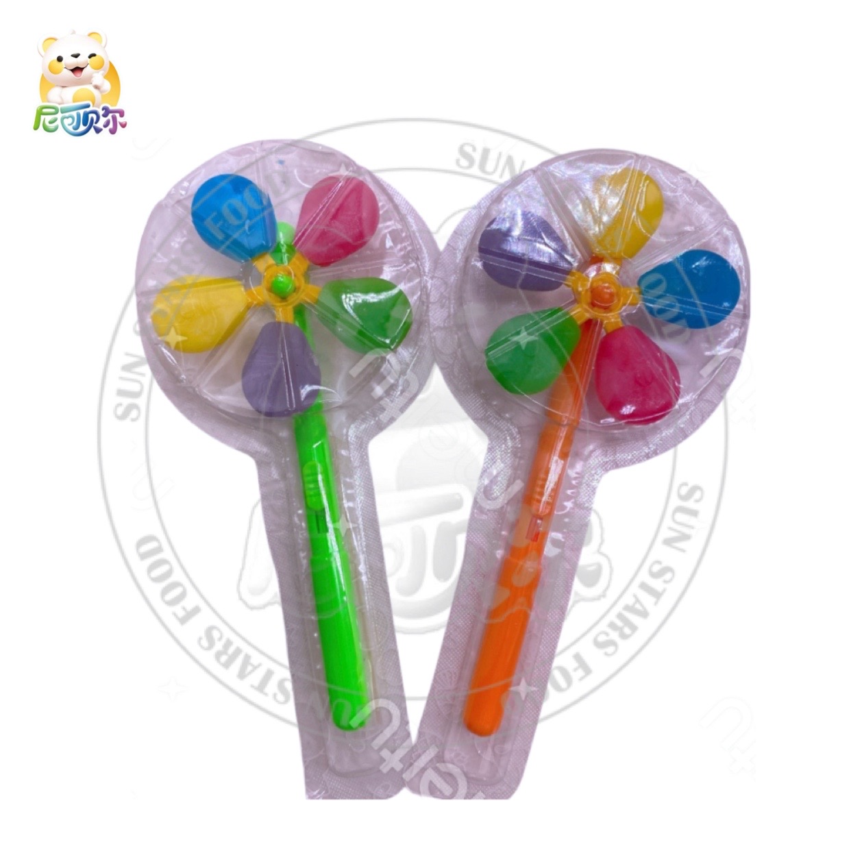 Halal Kids' Big Colorful Egg-Shaped Lollipops Rotating Flower Windmill Promotional Sweet Hard Candies Toy with Fruit Flavor-T555