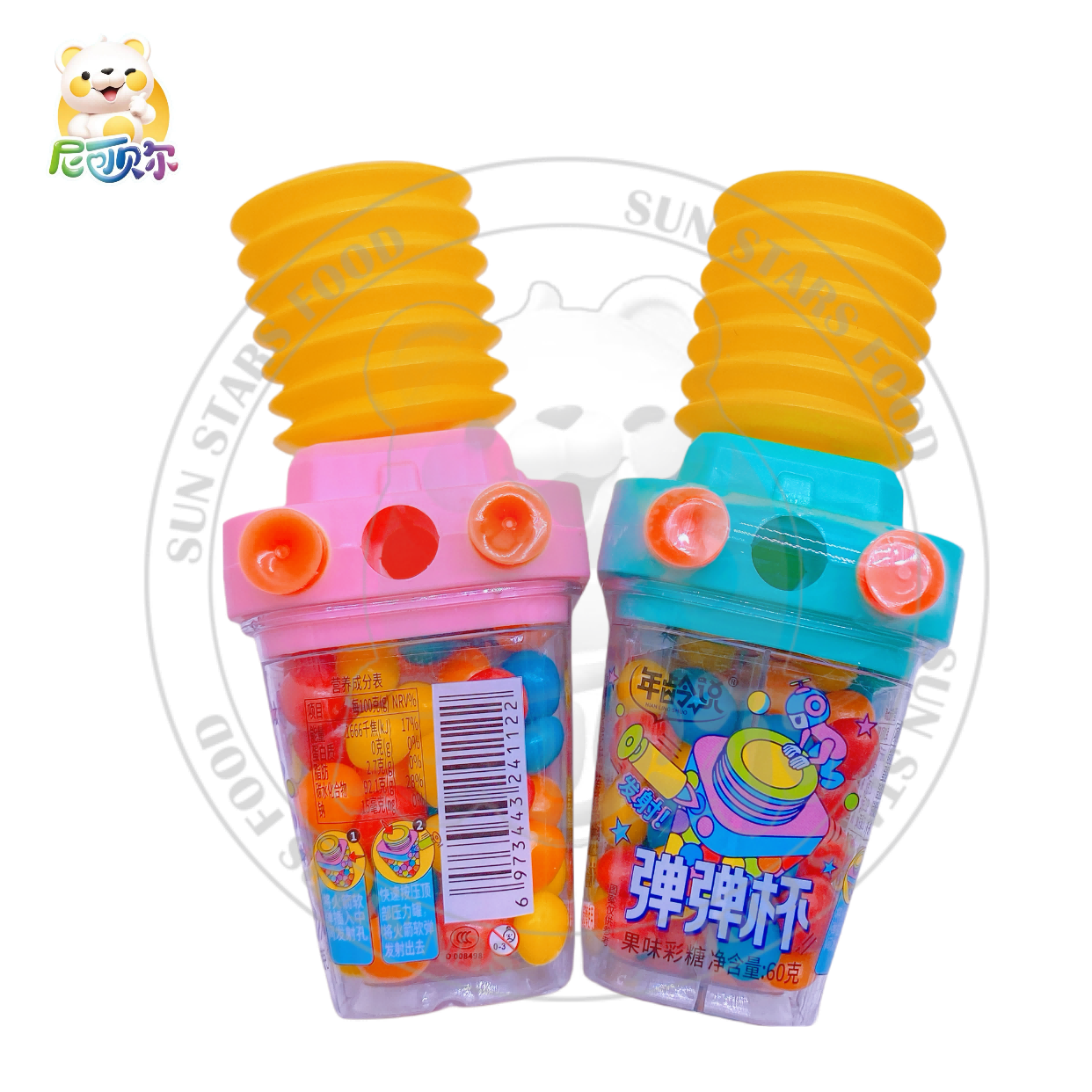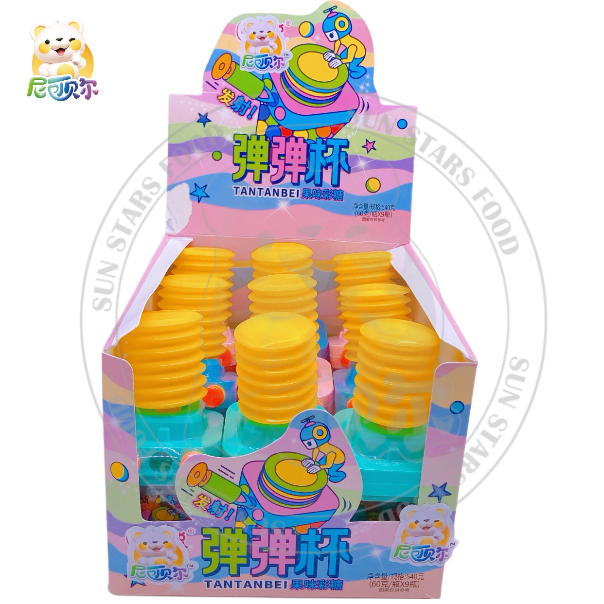 Hot Sale PVC Manual Plastic Bullet Toy Cartoon-Style Promotional Candy Gun in Rainbow Bean Flavor and Fruit Design-T576