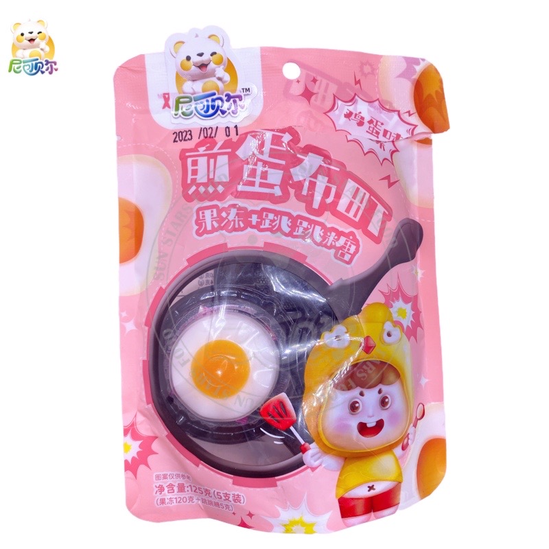 Hot Selling Halal Snack Food Soft Candy Fruity Flavor Funny Fried Egg Shape Fast Food Gummy Jelly Pudding Candy Toys For Kids-J123