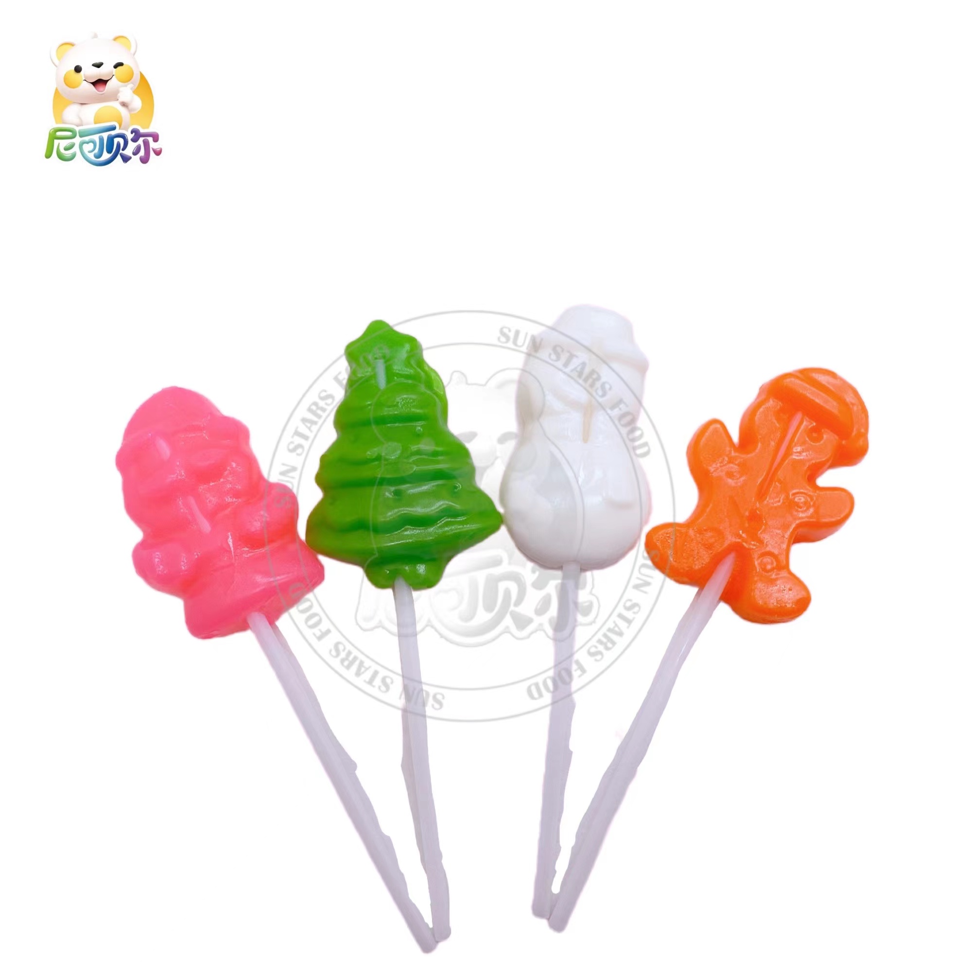 Wholesale Custom Santa Claus Christmas Tree Snowman Yeti Shape Fruity Lollipops-L290