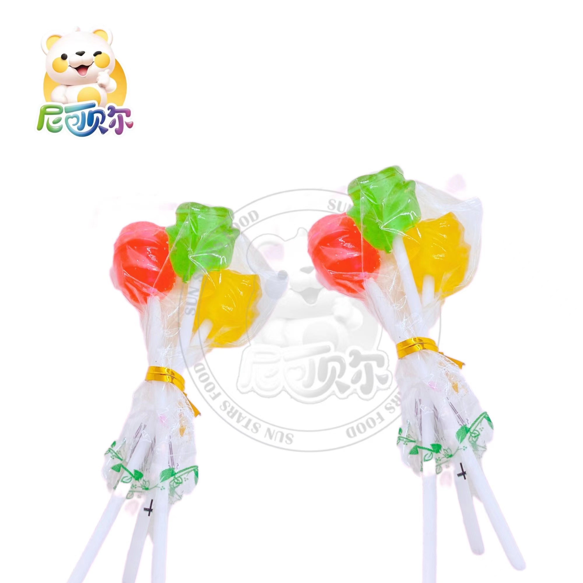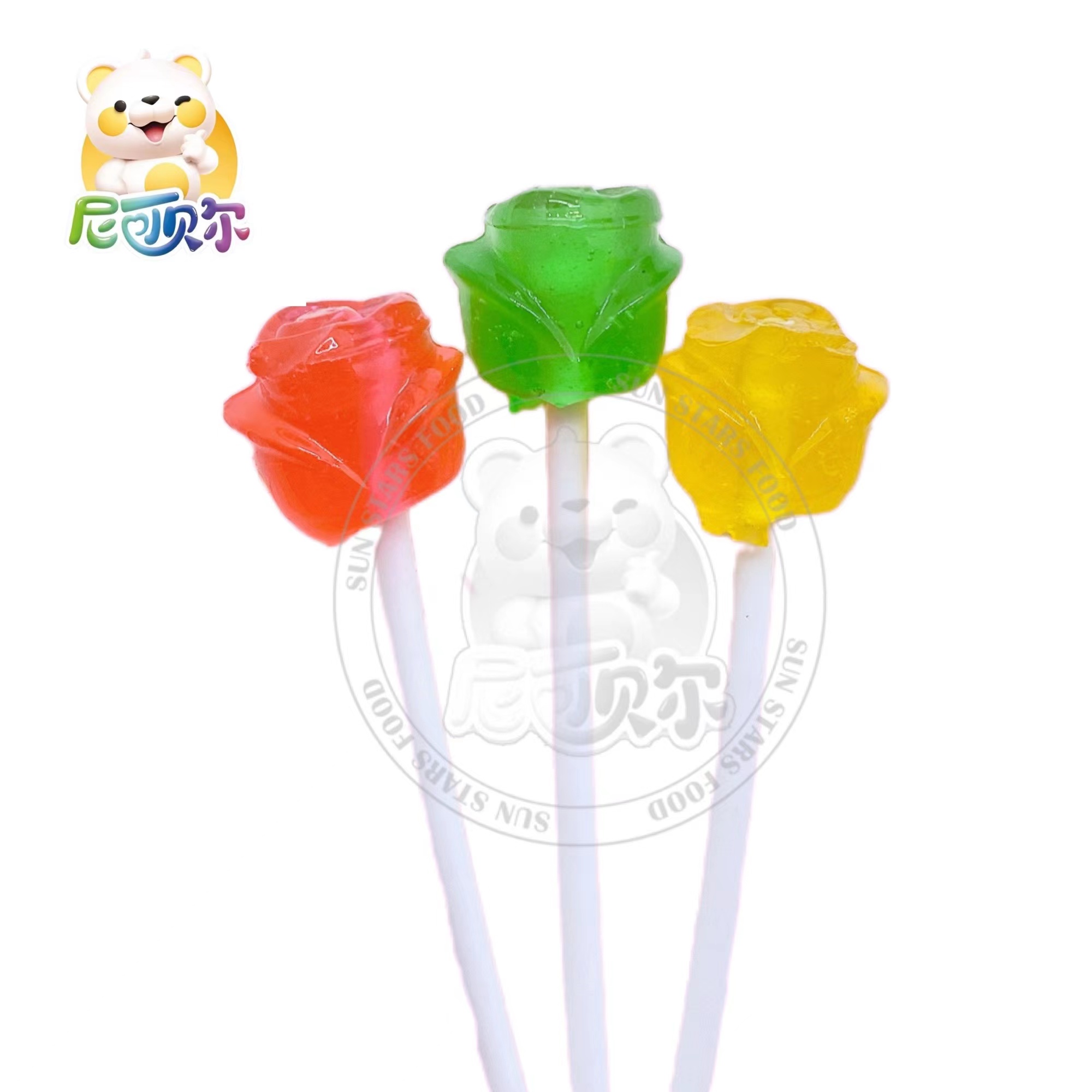 Valentine's Day Wholesale Custom Basket Packaging Multicolor Rose Shape Fruity Lollipops-L293