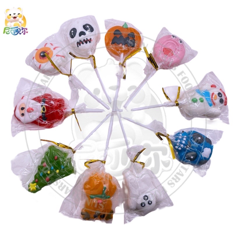 Halloween Christmas Halal Cartoon Santa Claus Christmas Tree Eyes Pumpkin Snowman Ghost Shape Mixed Fruit Cute lollipop Candy-L303