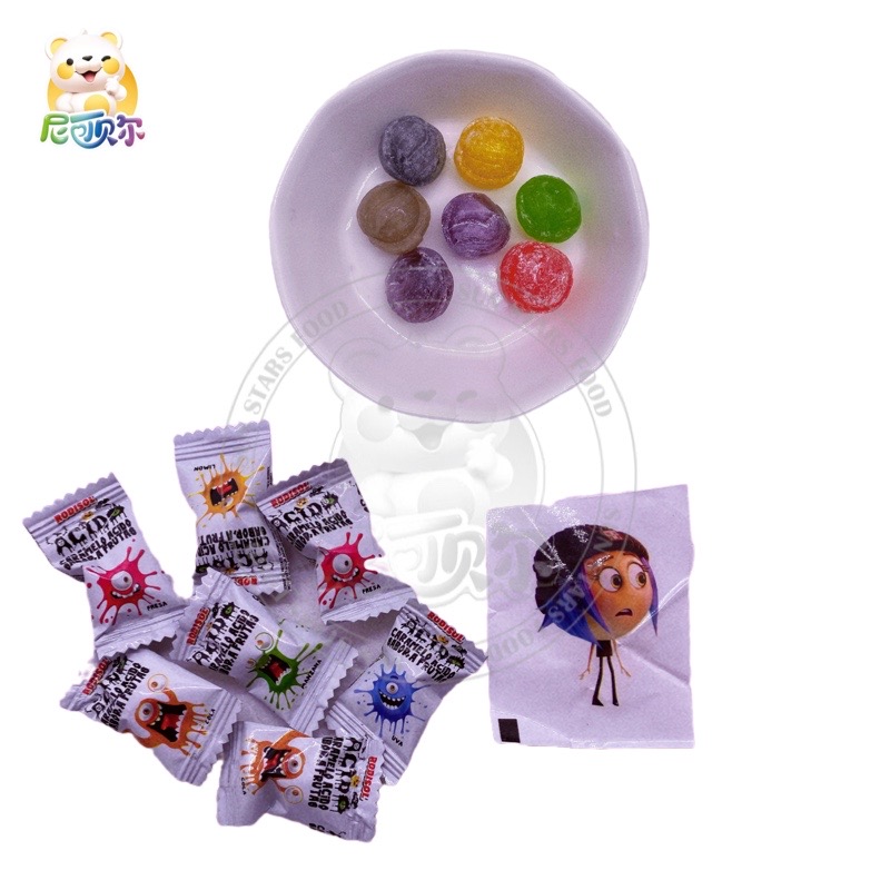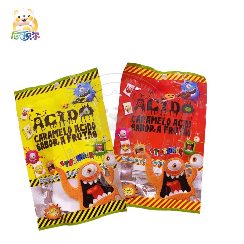7pcs Mixed Fruit Flavor Sweet Sour Caramelo Acido A Frutas Hard Candy In Bag Toys with tattoo stickers-H378