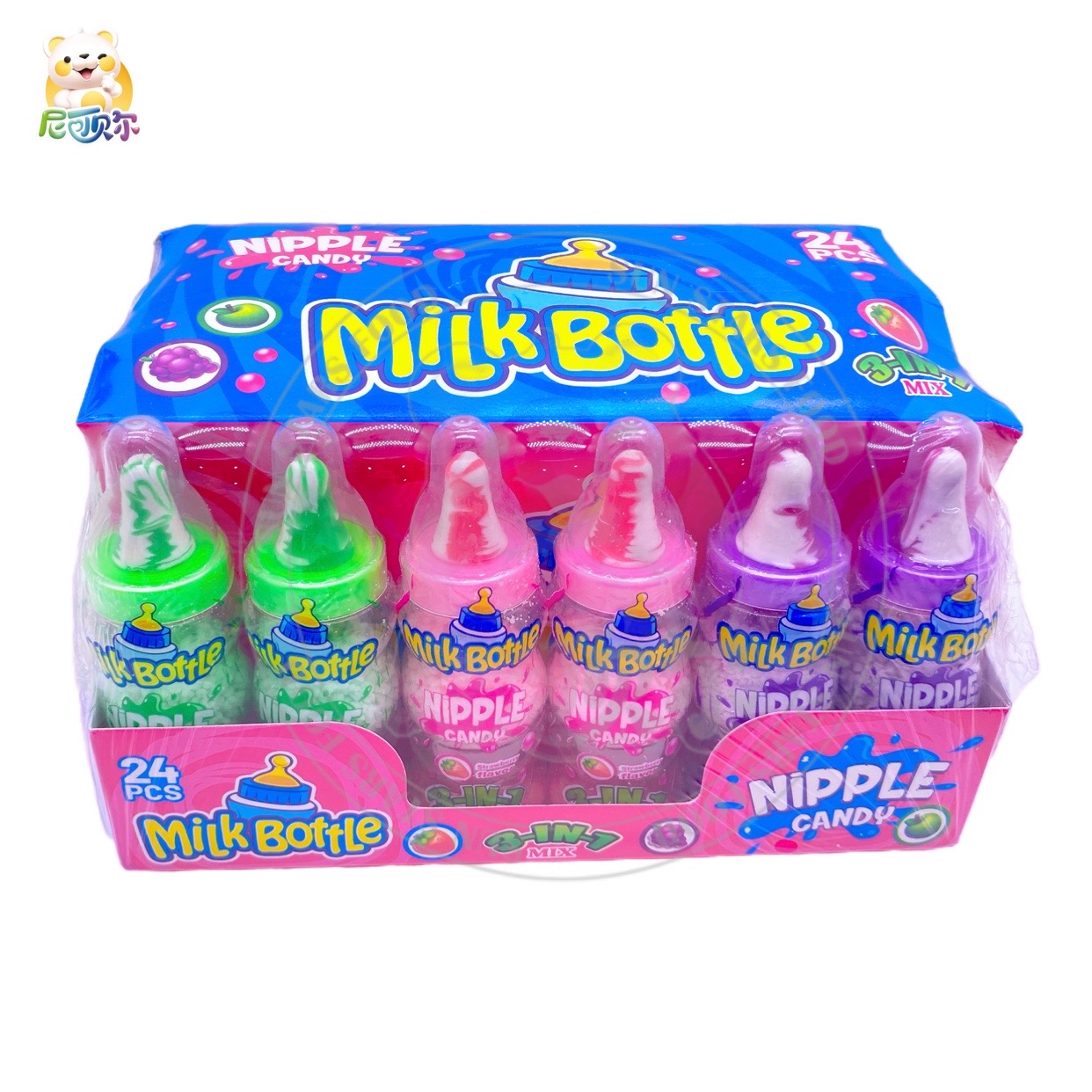 3 In 1colourful Jelly Beans With Nipple Lollipop Hard Candy Sour powder candy-H392