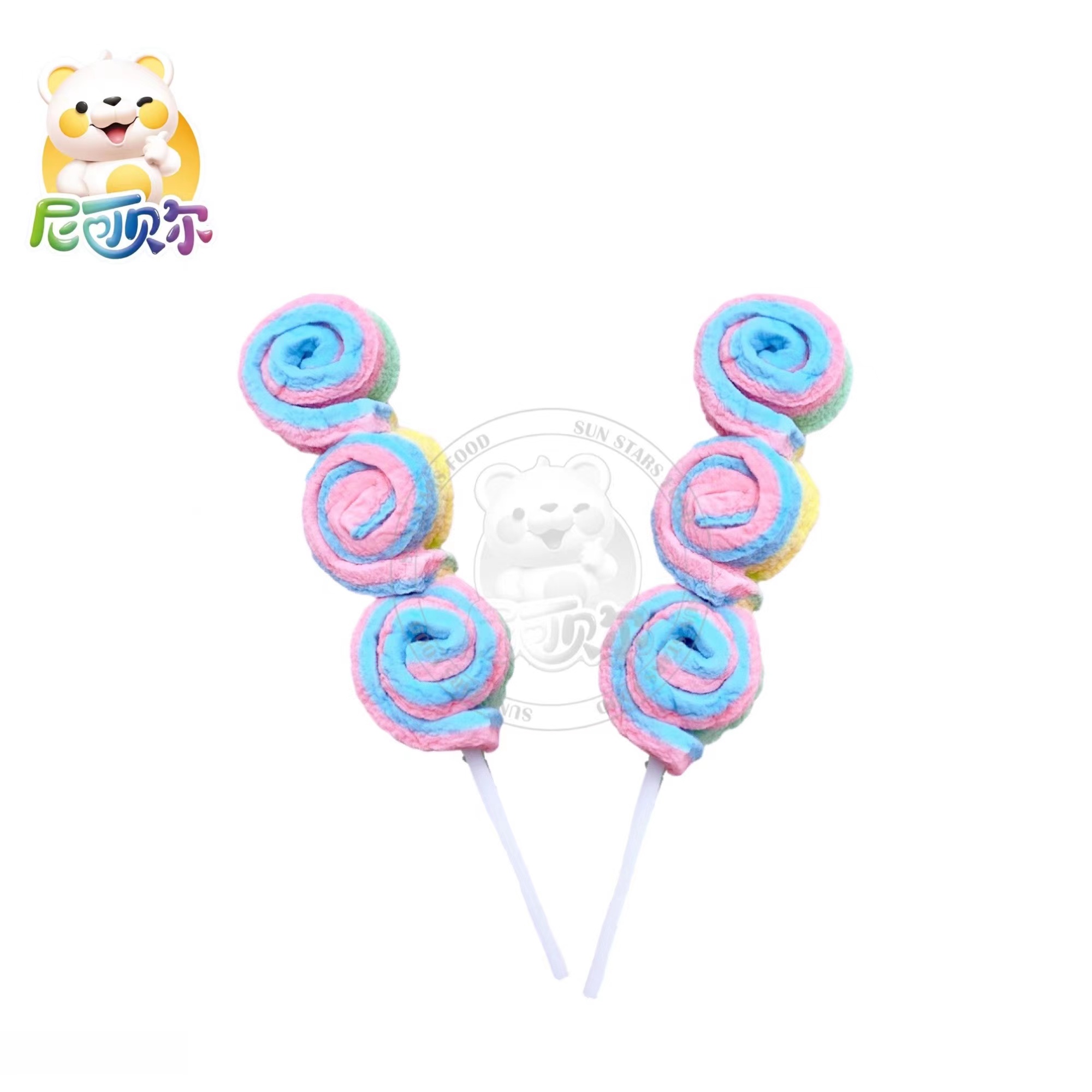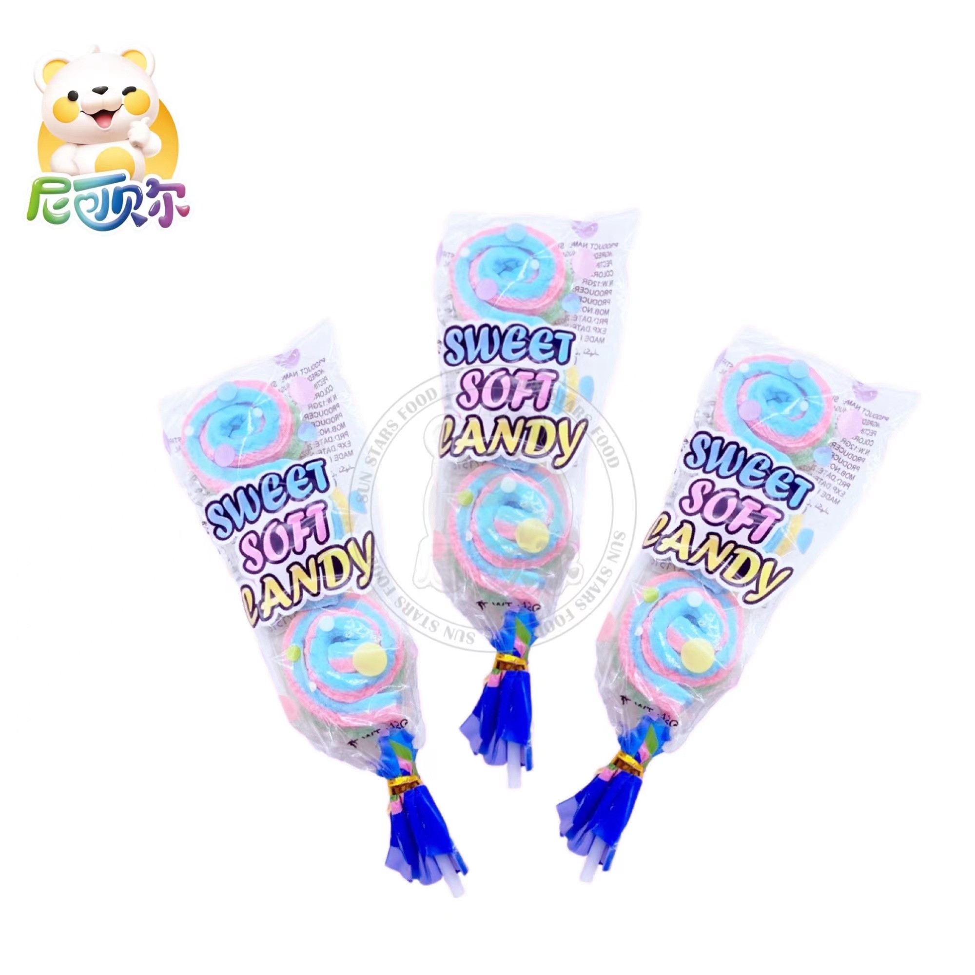 3pcs Soft Lollipop Cotton Candy String Colorful Sweet Fruit Flavor Egg Roll Marshmallow Candy-M081
