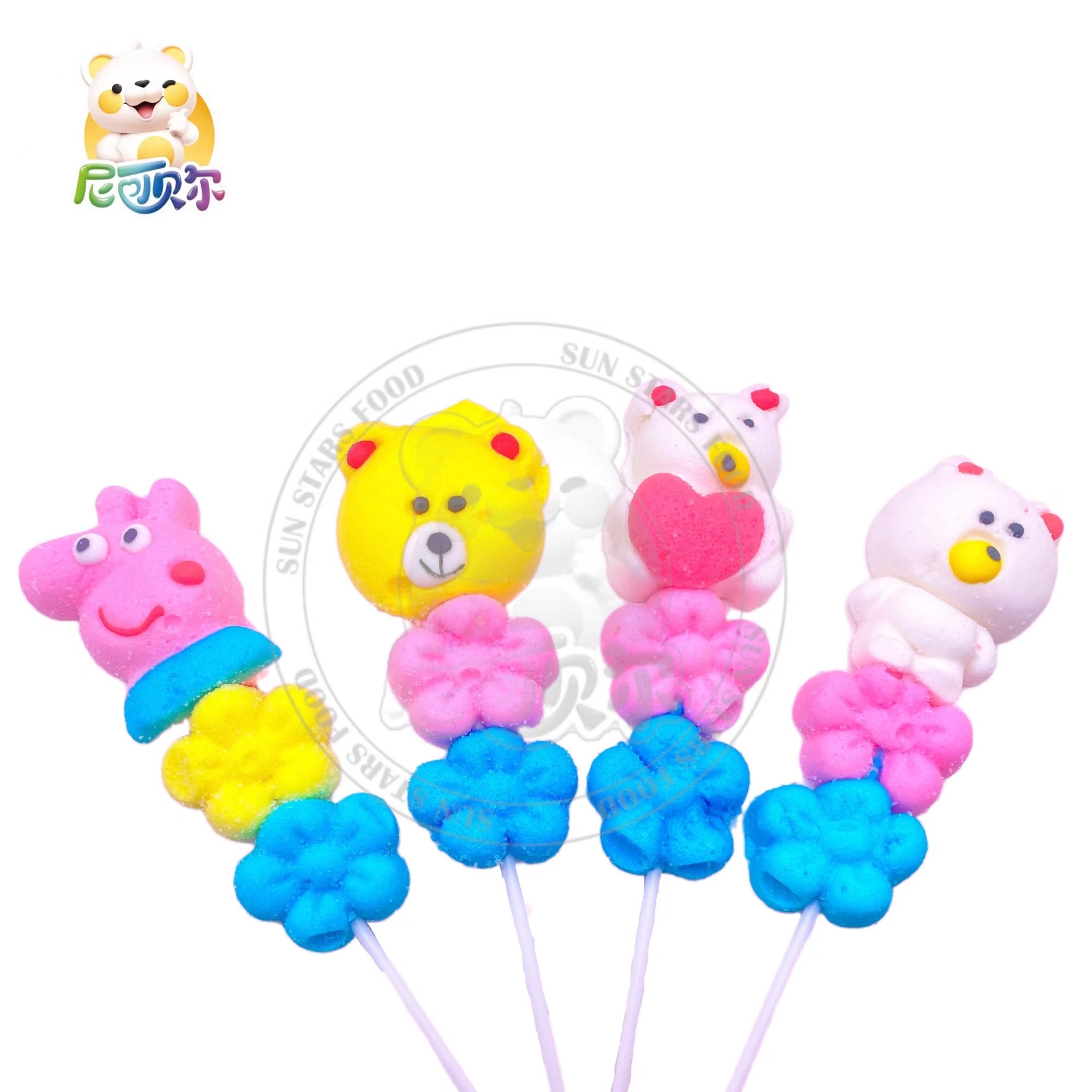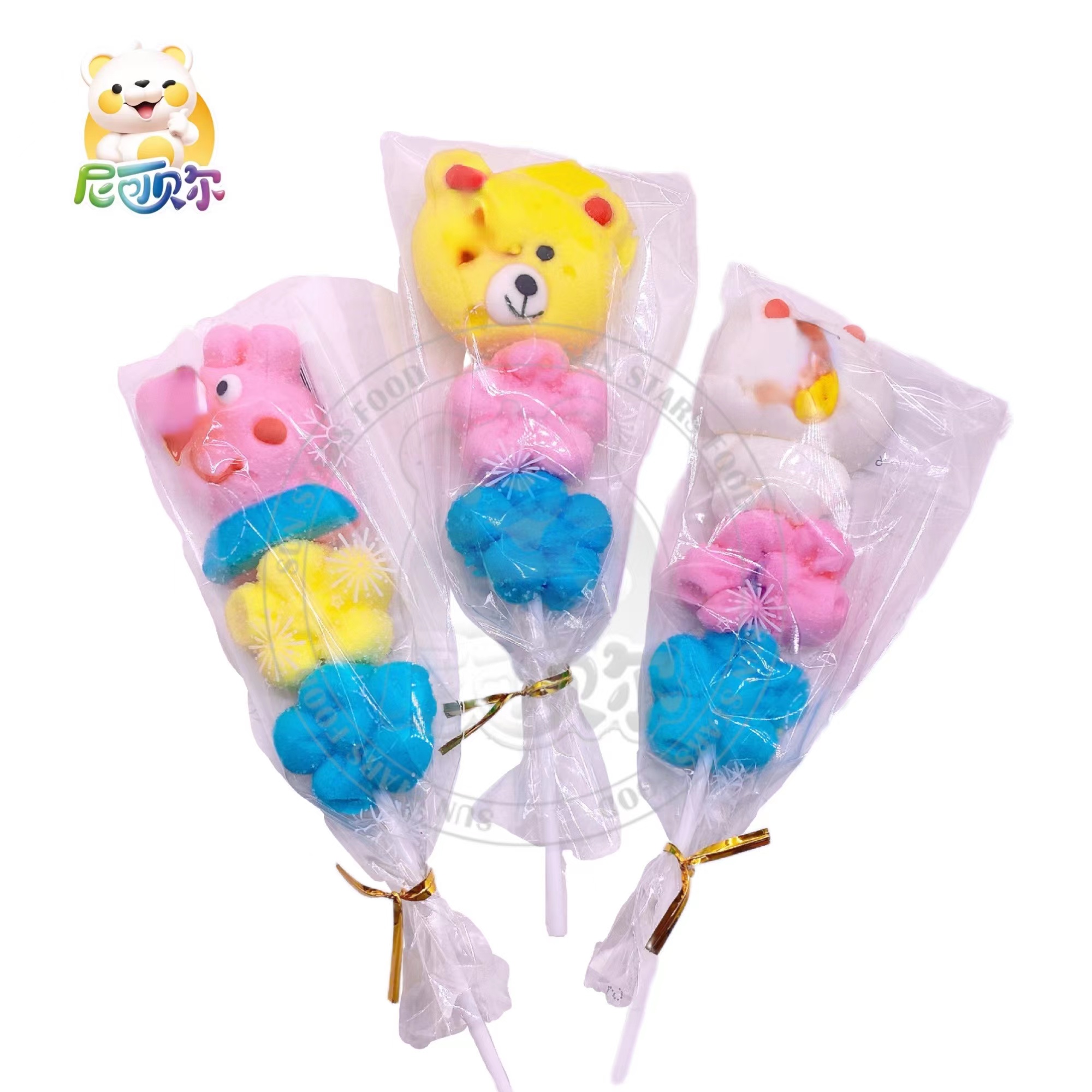Wholesale custom new halal marshmallow cartoon animal shape marshmallow lollipop-M093
