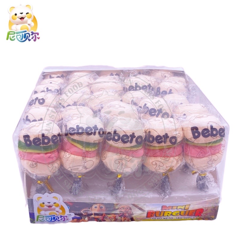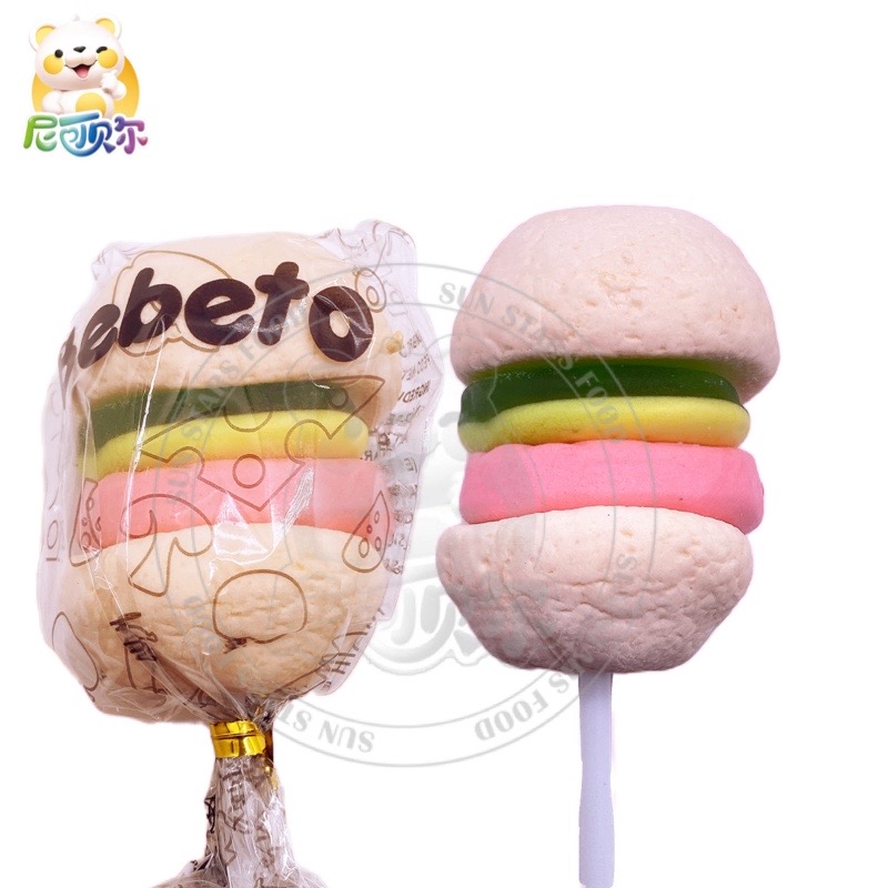Halal Burger Marshmallow Fruity Hamburg Cotton Candy Lollipop Chewy jelly gummy-M100