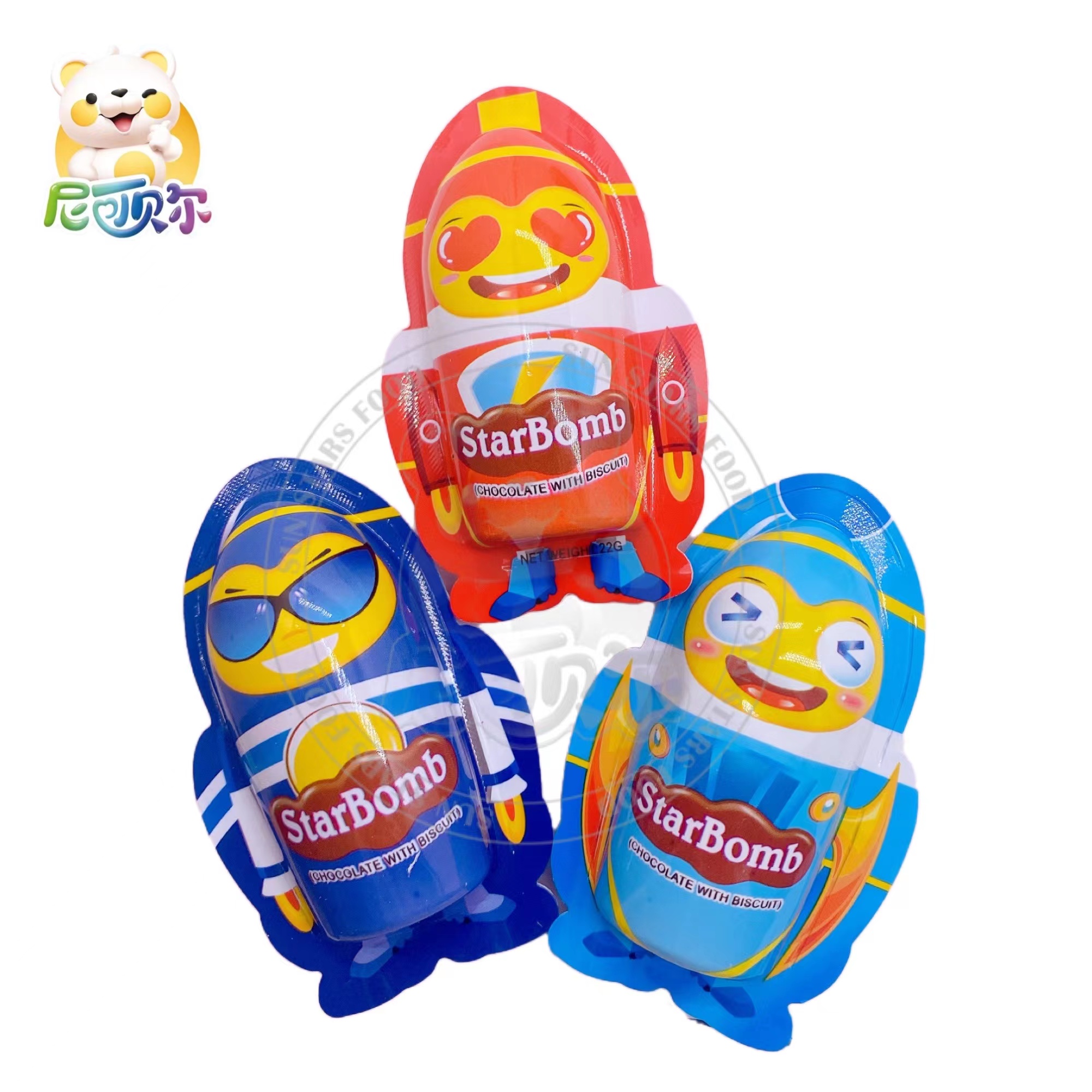 Kids love rocket shaped surprise chocolate eggs chocolate cookies cartoon surprise eggs with toys inside-C434
