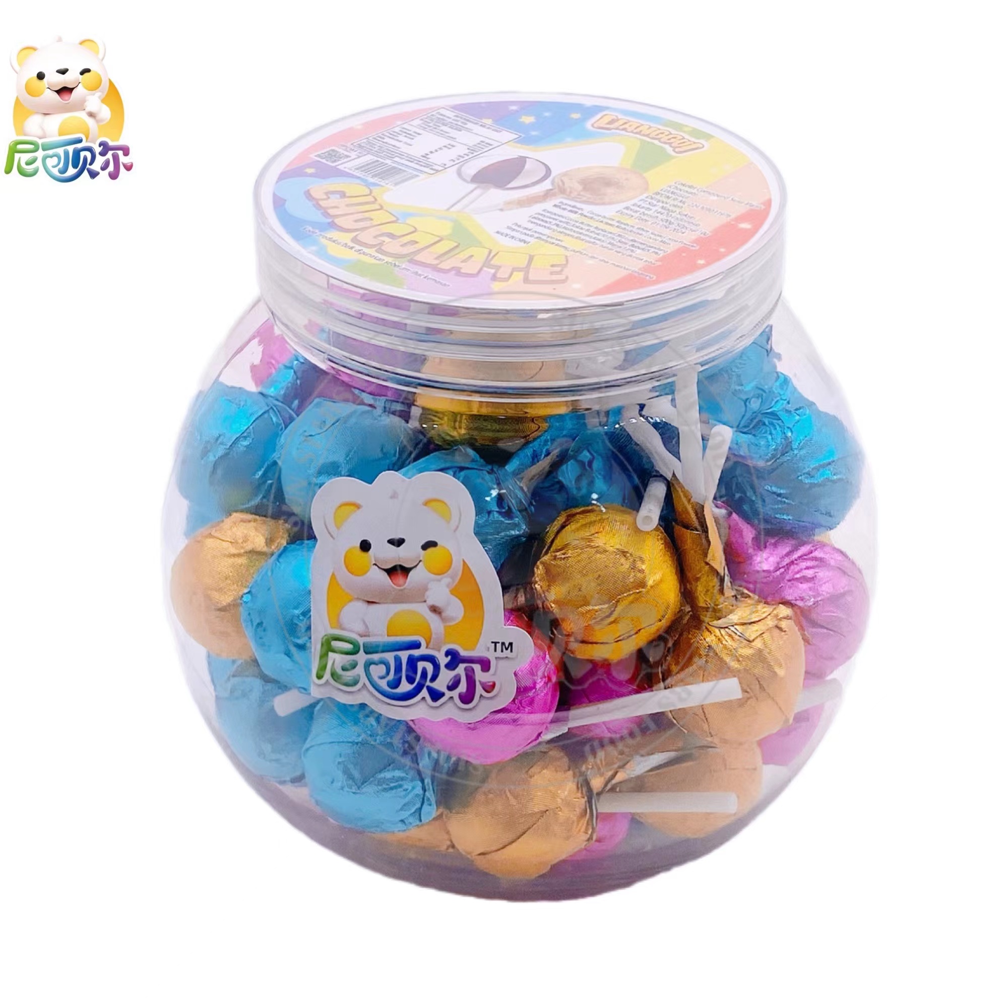 Oem Round Hard Milk Chocolate Flavor Chocolate Lollipop-C440