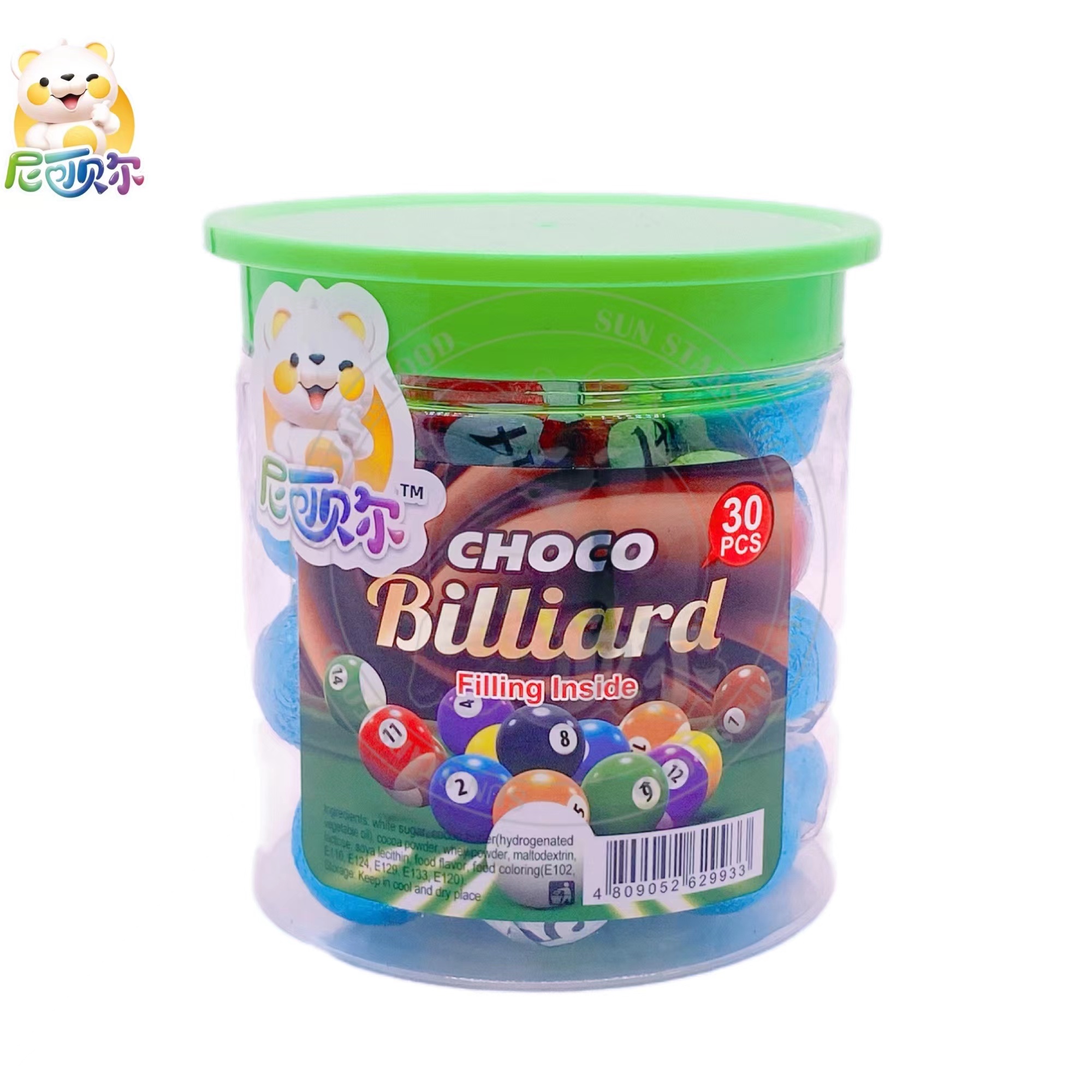 Snooker Chocolate Foil Wrap Packaging Chocolate Ball Snack Food Sweet Crispy Heart Coated Compound Chocolate Ball Candy-C444