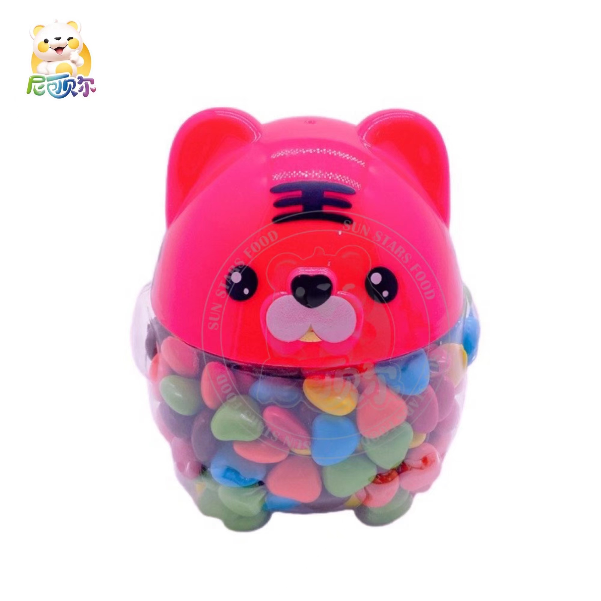 Cute tiger shape can Chocolate Candy Wholesale Halal Colorful Crispy Sugar Coated Milk Chocolate Beans For Kid-C470