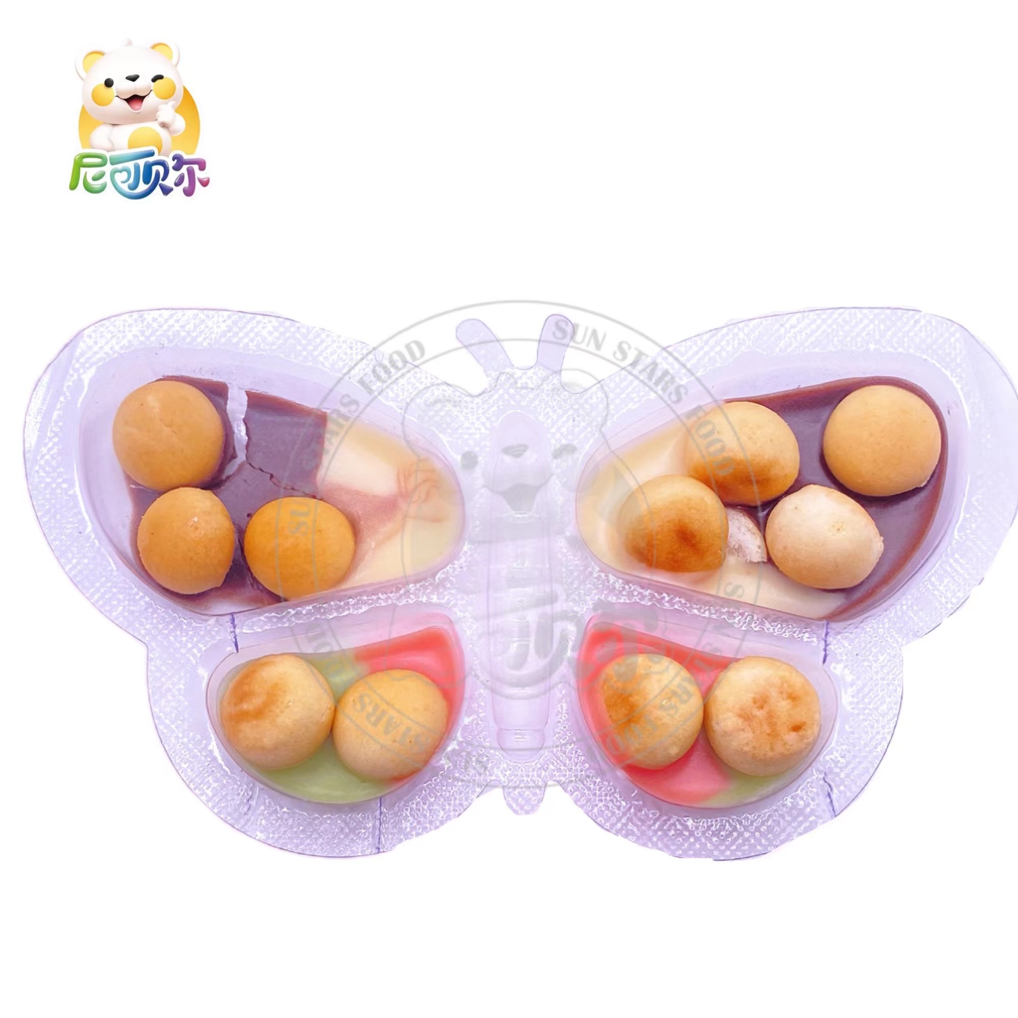 Wholesale Custom Halal Butterfly Shape Cookies Chocolate Chip Cookies with Black and White Chocolate Sauce-C478