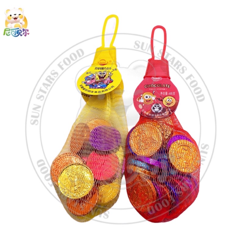 Halal Factory Wholesale Mesh Bag Colorful Coin Gold Coin Shape Dark Chocolate-C495