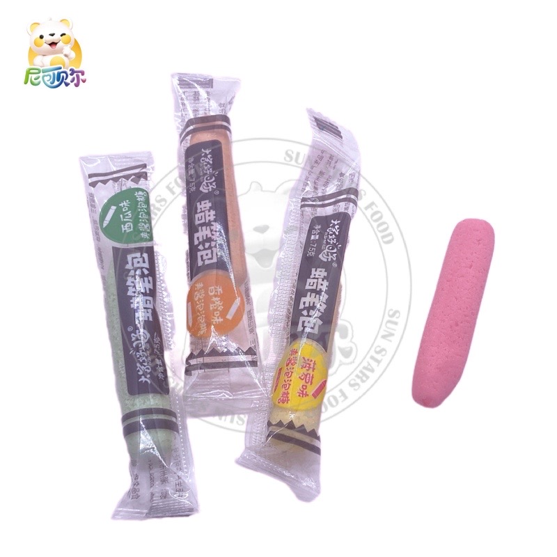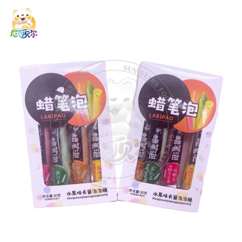 Halal Crayon Shaped Tutti-frutti Bubble Gum With Jam Filling-G379