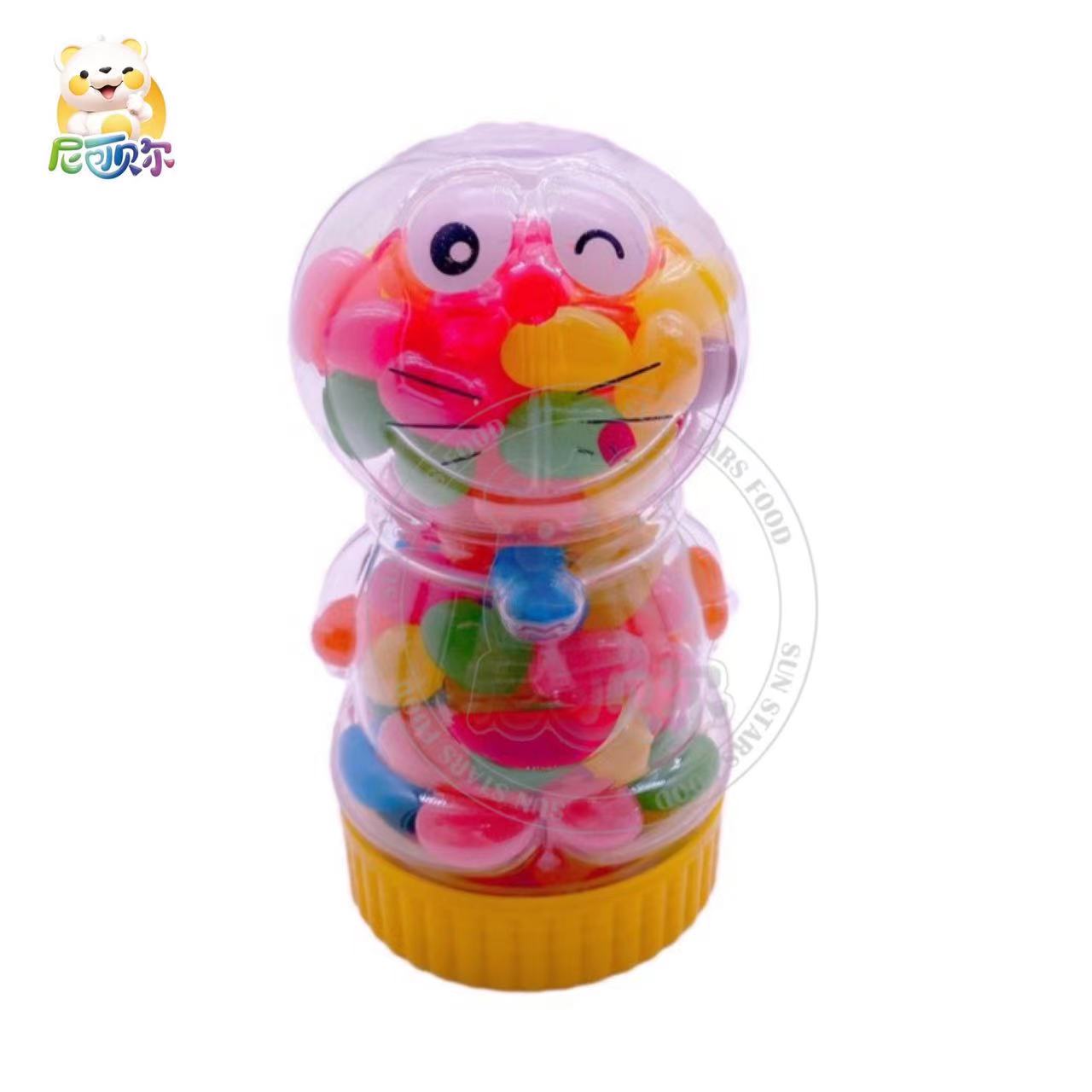 Customized wholesale halal candy cartoon mini Doraemon cat can packaging fruit flavored jelly bean toy jelly candy-G207