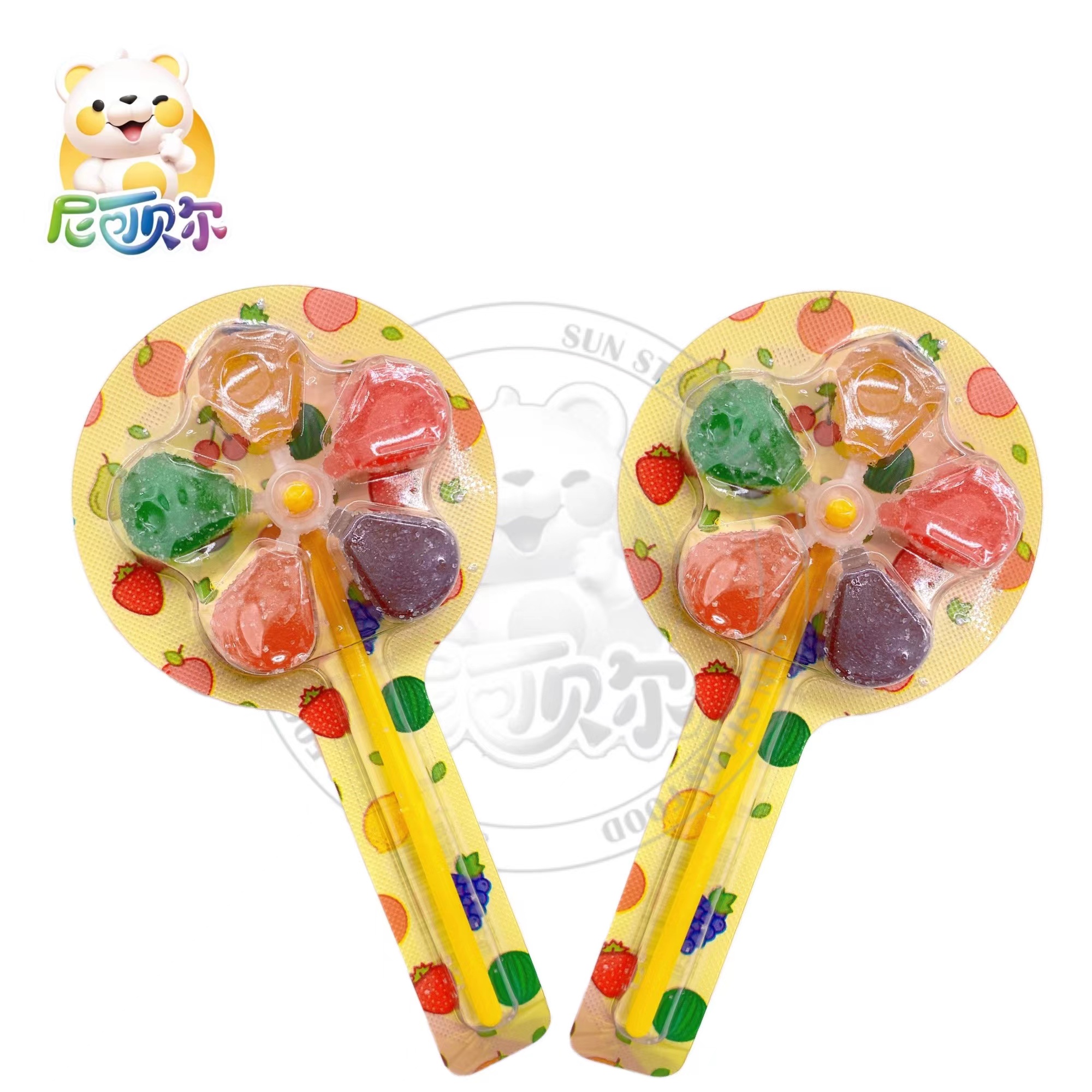 Halal Colorful Fruit Flavor Sugar Coated Windmill Lollipop Gummy Candy Manufacturer-G230
