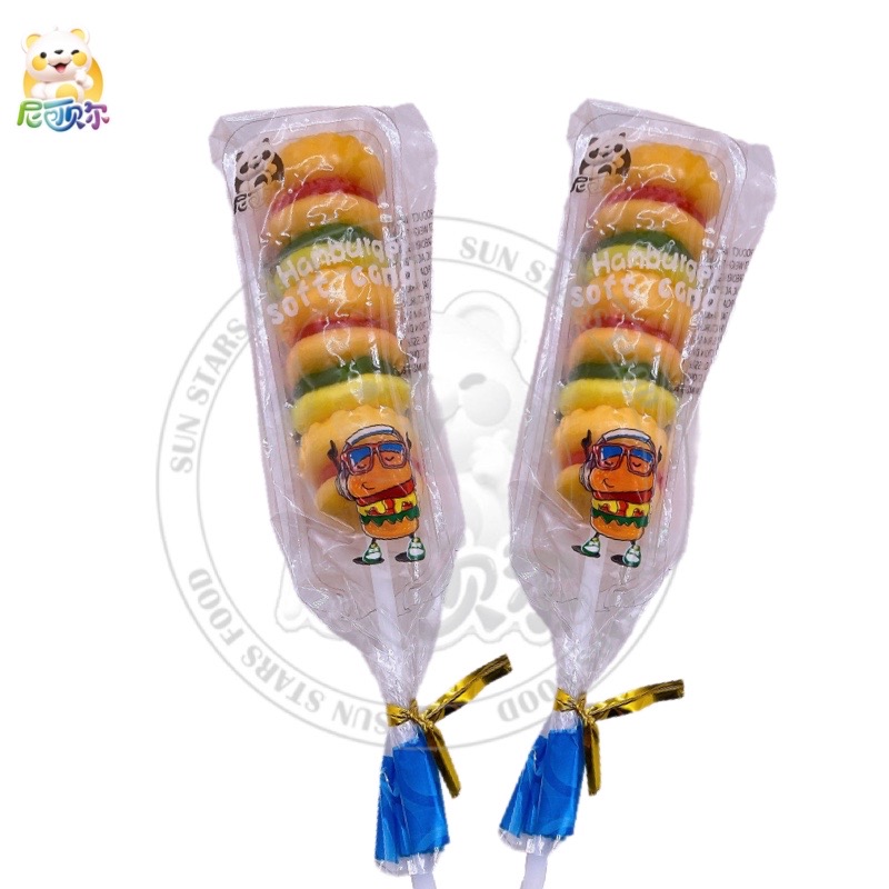 Hot-sale hamburger food shape circular assorted gummy candy chewy candy-G268