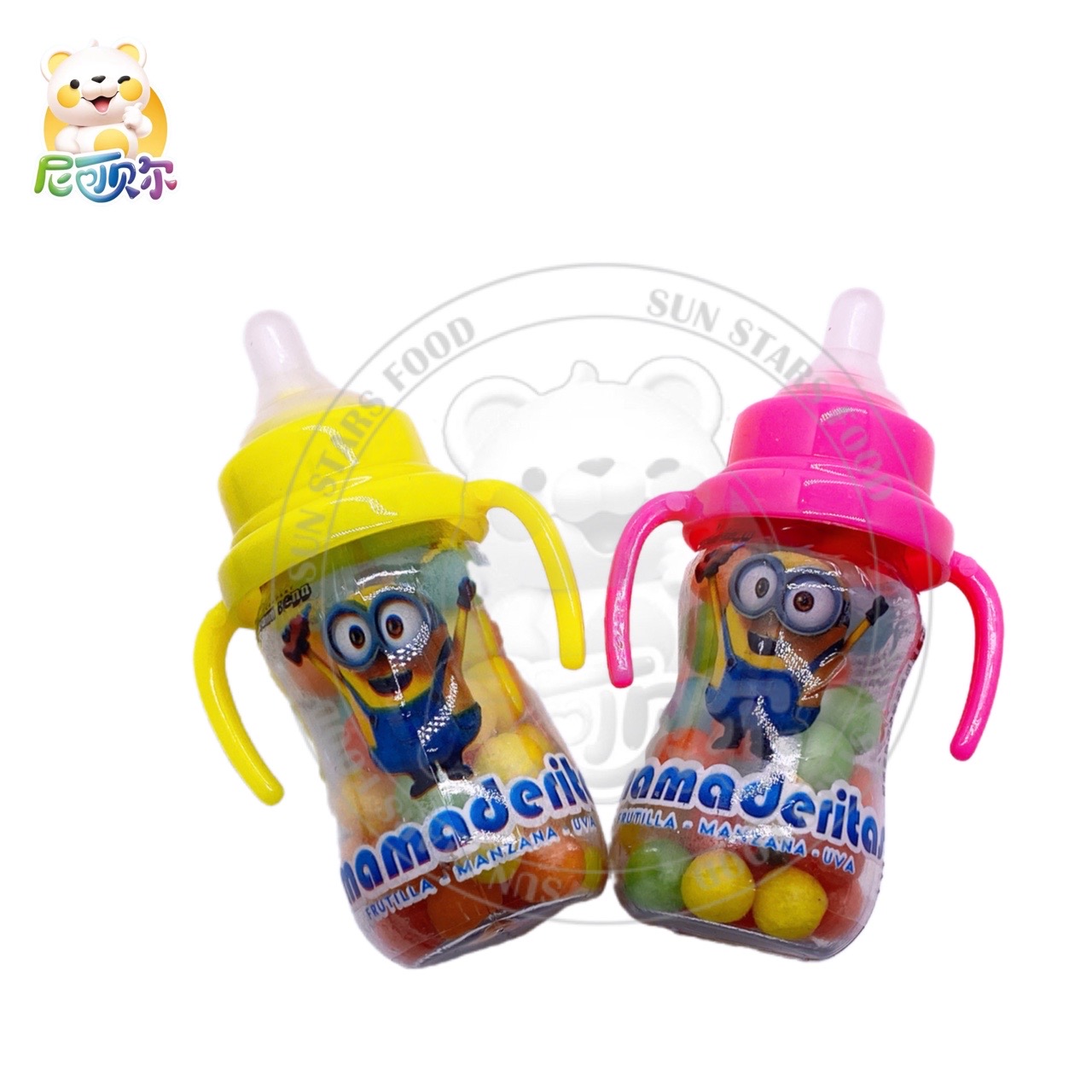 Lovely Plastic Colorful Feeding Bottle Sweet Mixed Fruit Flavor Crispy Wafer Ball Biscuits Puffed Soft Candy-G273