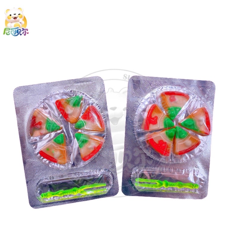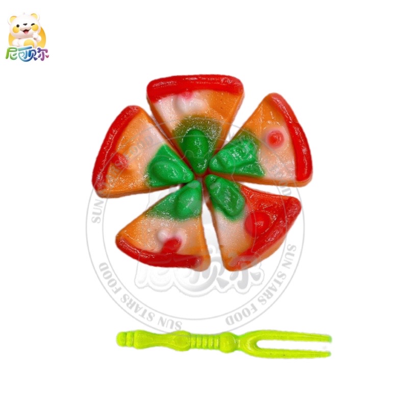 Cute Pizza Shaped Halal Fruit Flavor Jelly Soft Gummy Candy Toys With Fork-G284