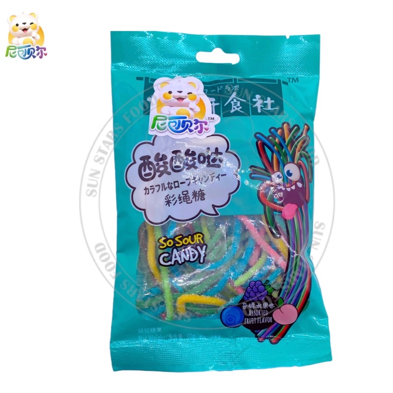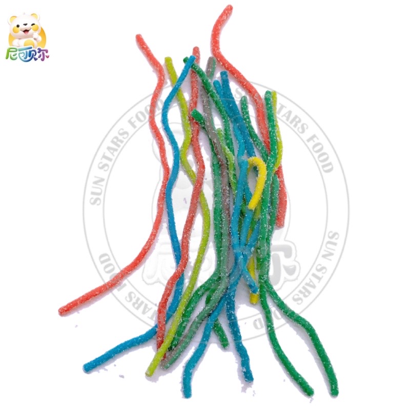 Manufacturer Wholesale Sugar Coated Rainbow Sour Candy Belts Soft Gummy Candy Sour Strips With Powder Filling-G296
