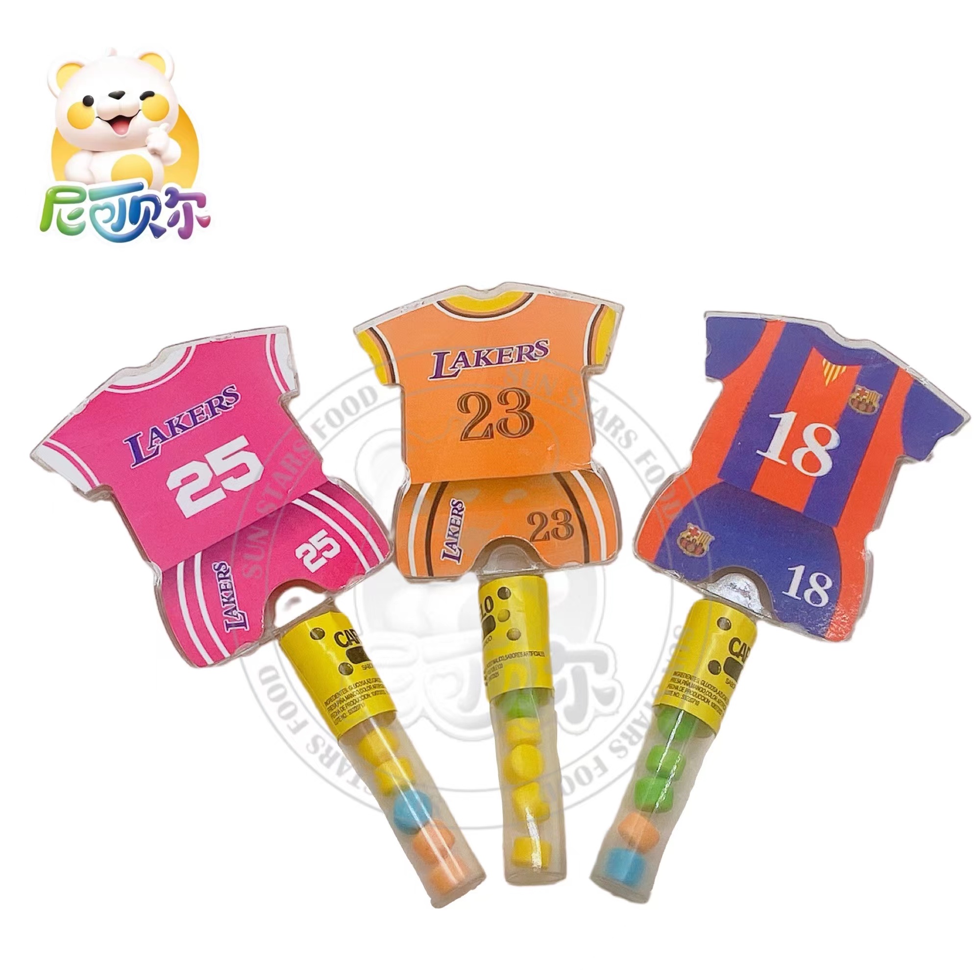 China wholesaler football field jersey shape mini pinball toy with fruity pressed candy-T423