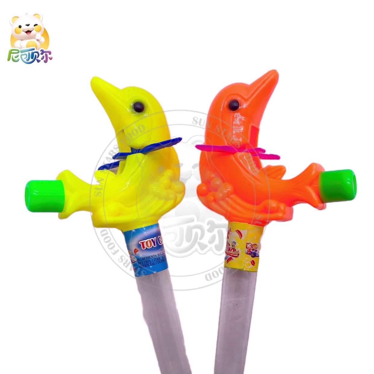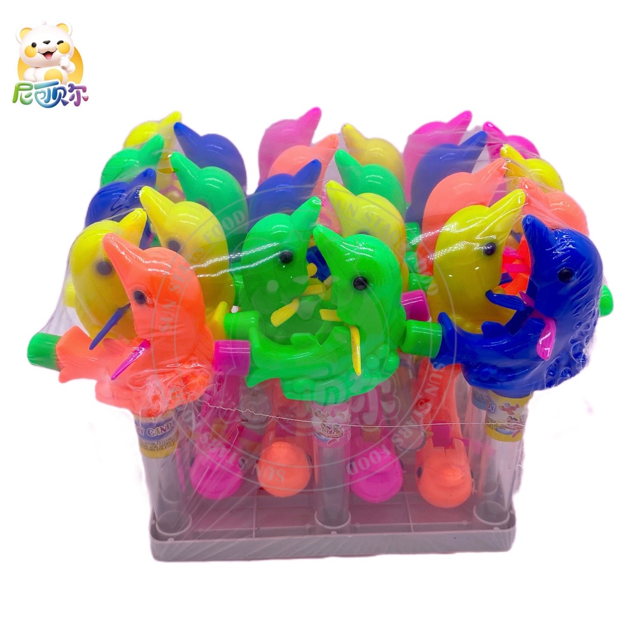 Wholesale custom mini dolphin whistle toy with colorful pressed candies-T454