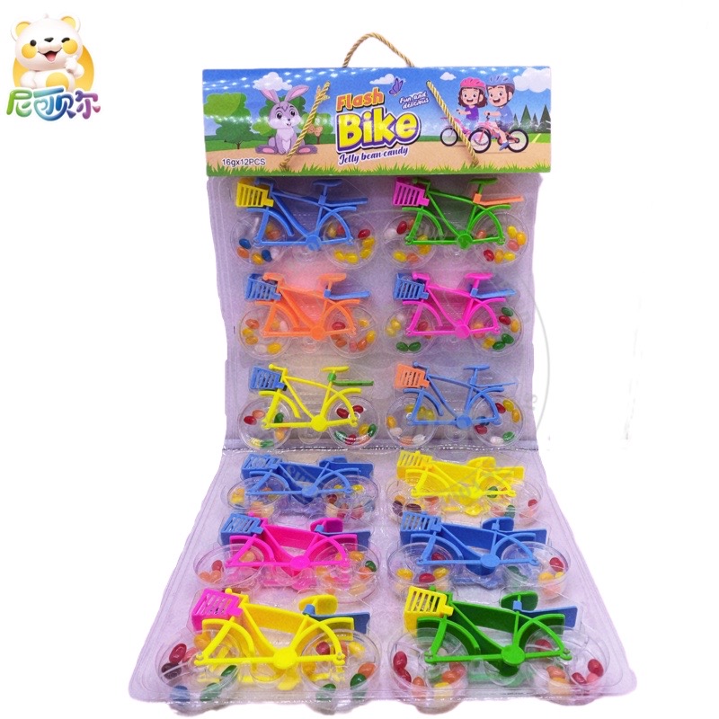 Glowing bicycle toys, candies, colorful sweet halal fruit flavored jelly sugar beans and lucky beans-T494